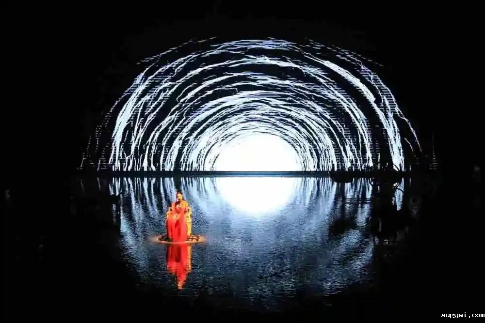 36 tall carved wooden doors opened slightly, and the actors danced gracefully; the light and shadow on the stage changed, and layers of water curtains fell from time to time... "It's so shocking!" The audience exclaimed in unison.