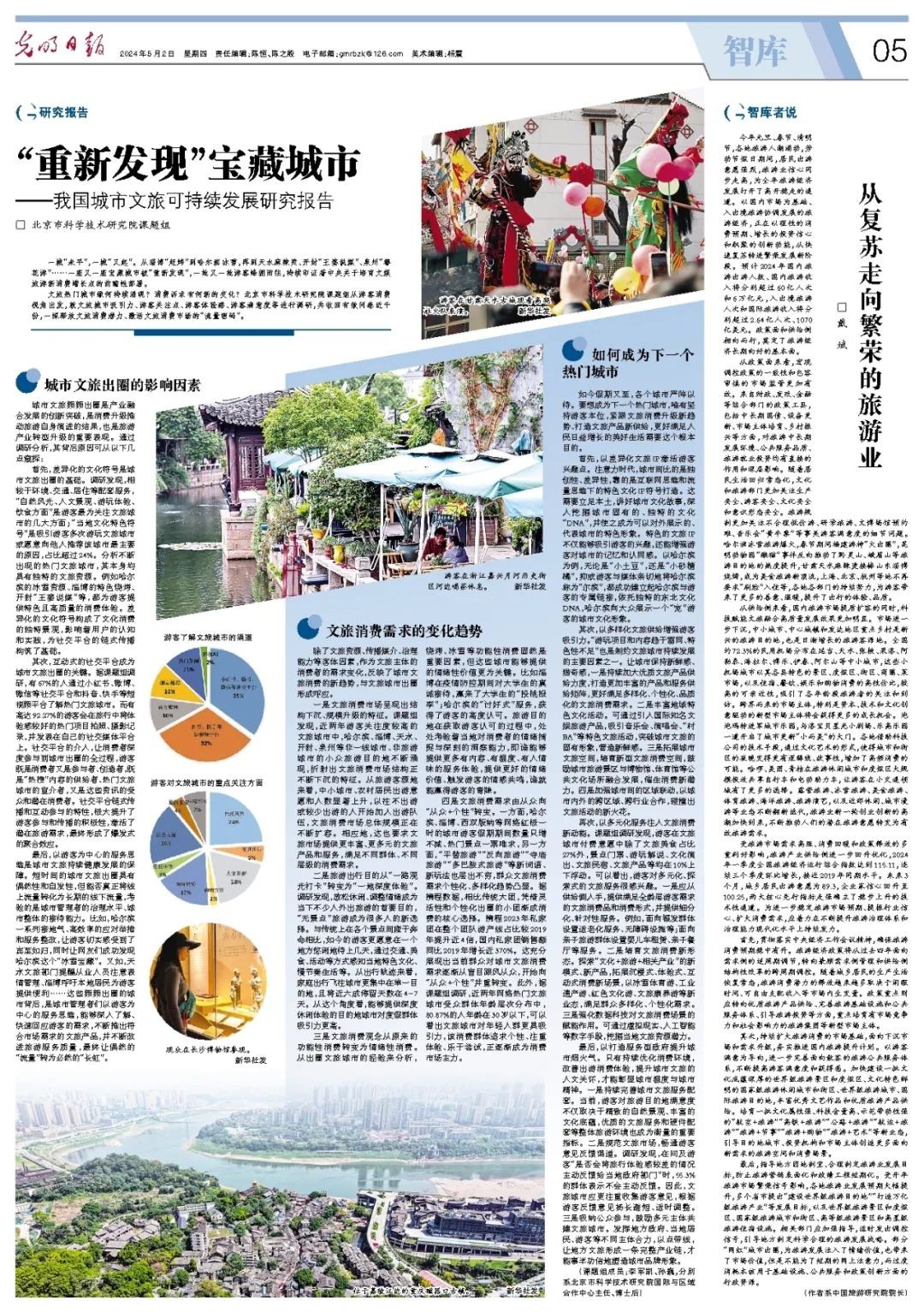 Recently, our Dean Dai Bin published a signed article entitled "Tourism Industry from Recovery to Prosperity" in the Think Tank Edition of Guangming Daily, which explained the basic characteristics of rapid recovery from the perspective of policy and supply side, and proposed the main strategies for prosperity and development from the aspects of improving the modernization level of tourism governance system and governance capacity. The full text is shared as follows: