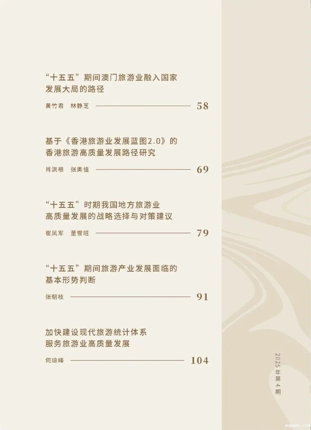 来自内地高校和研究机构的三篇文章对国家和地方“十五五” 旅游业发展规划的编制具有参考意义和借鉴价值。绍兴文理学院党委书记崔凤军教授从地方视角有针对性地提出了非均衡发展、市场化改革、强化科技引领、优化治理结构等四项策略,其中启动县域旅游推广计划、培育旅游人才等建议尤其有现实针对性。复旦大学张朝枝教授长期从事文化、文物与旅游融合研究,在总结过去20年投资驱动型旅游发展模式的基础上,分别从旅游市场需求变化和政府的资源管理政策两个方面得出旅游业未来五年的发展趋势。其针对国家“十五五” 旅游业发展规划的建议兼具了理论高度和实践可行性, 很是值得阅读。必威手机登录界面统计调查所所长何琼峰博士结合多年的旅游统计实践经验,从强化统计职能、完善统计制度、优化采集体系、提升统计质量,以及监管、保障和人才培养等方面,提出了现代旅游统计体系的建设意见,是旅游业打基础、立长远的务实举措。