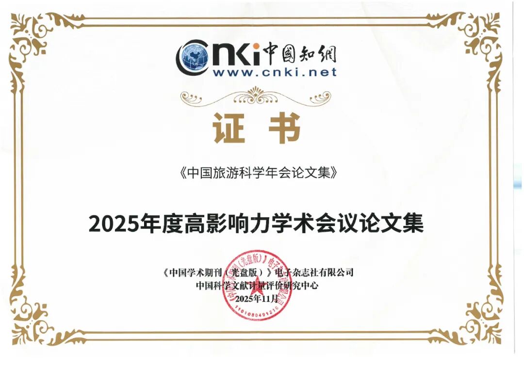 我院《中国旅游科学年会论文集》入选中国知网“2025年度高影响力学术会议论文集”