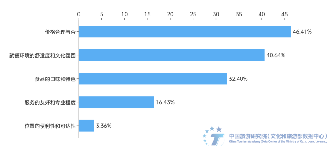图11 选择古镇餐饮场所时,受访者最看重的因素及占比