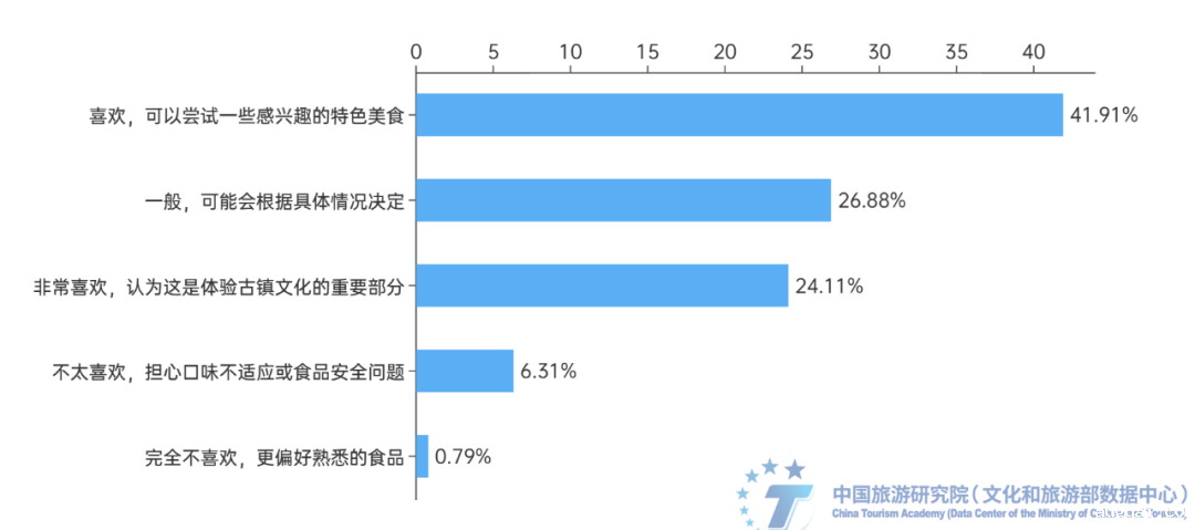 图10 是否喜欢尝试古镇当地特色美食或风味小吃的受访者占比