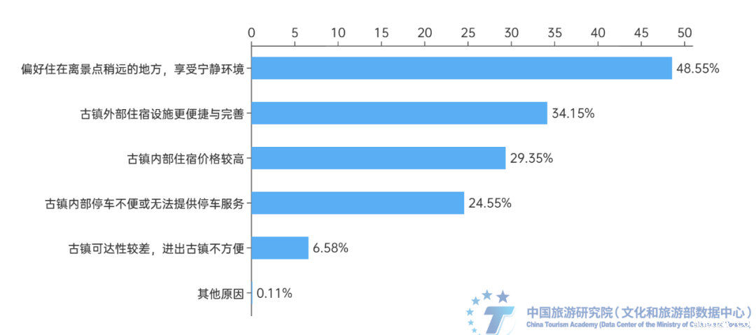 图14 选择在古镇外住宿原因及相应受访者占比图