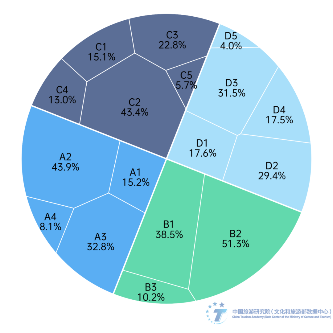 注:A代表古镇旅游中受访者最担心的问题;B代表受访者对古镇之间是否存在较大相似性的认知;C代表受访者认为古镇同质化的主要表现;D代表受访者认为古镇同质化的原因。A1代表人流拥挤;A2代表过度商业化、失去原真性;A3代表服务质量差;A4代表古镇保护不善、环境脏乱。B1代表感觉很多古镇都很相似;B2代表有一些相似;B3代表不相似。C1代表建筑风格相似,缺乏特色;C2代表商店和售卖的商品缺乏特色,多为纪念品和仿古工艺品;C3代表古镇餐饮类似,缺乏地道的地方特色美食;C4代表文化活动和体验项目内容相似;C5代表旅游服务和管理模式相同。D1代表追求快速商业化和旅游开发;D2代表原住民流失;D3代表模仿成功案例,缺乏创新;D4代表缺乏深入的文化挖掘和传承;D5代表政府规划和政策引导不足。