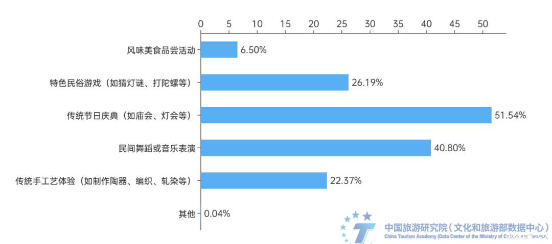古镇民俗文化活动是文旅融合的重要载体。古镇为游客提供了活动空间,而古镇内民俗活动、民间舞蹈和音乐等则为游客的个人情绪调动和情感共鸣提供可能。调查显示,92.77%的受访者愿意参与当地民俗活动,其中传统节日庆典是最受欢迎的古镇民俗活动,占比达51.54%。其次是民间舞蹈或音乐表演,占比为40.8%。传统手工艺体验和特色民俗游戏分别占比为22.37%和26.19%。此外,对于古镇民俗活动的可参与性,超过半数的受访者认为较好或非常好,有一定的活动供游客参与,活动丰富多样,游客参与度高。