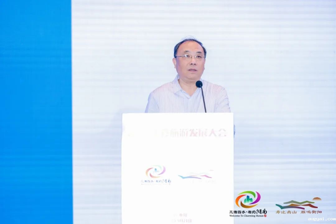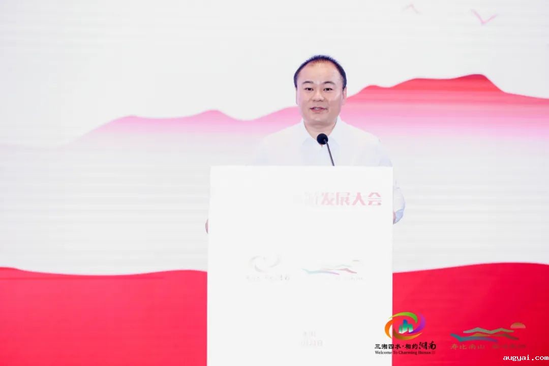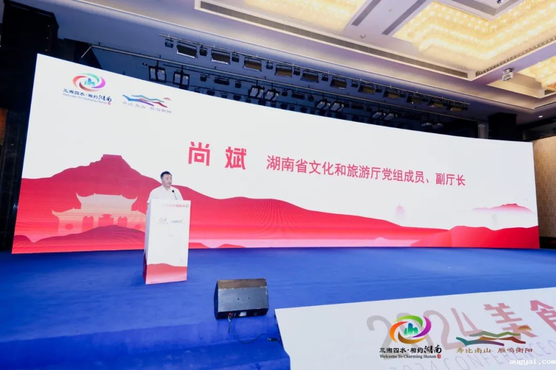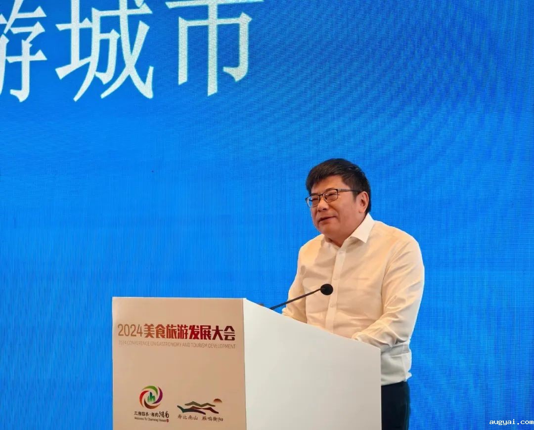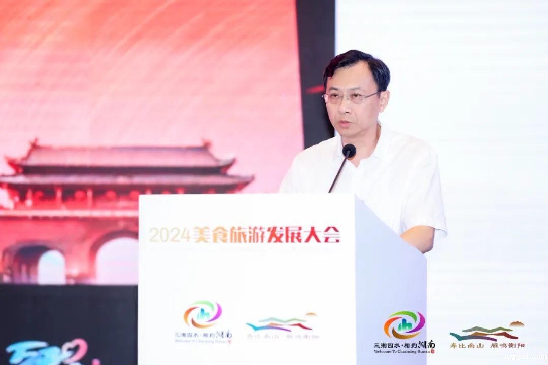 湖南省委宣传部副部长、湖南省文化和旅游厅党组书记、厅长李爱武在致辞中表示湖南美食旅游前景广阔,湖南省致力于以美食开辟文旅融合新赛道,推动文化旅游高质量发展。