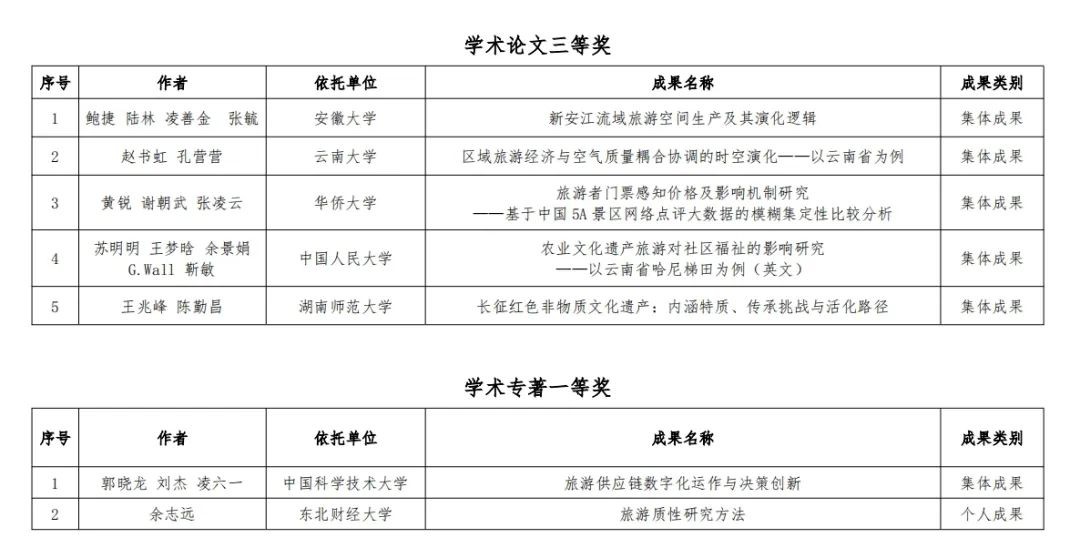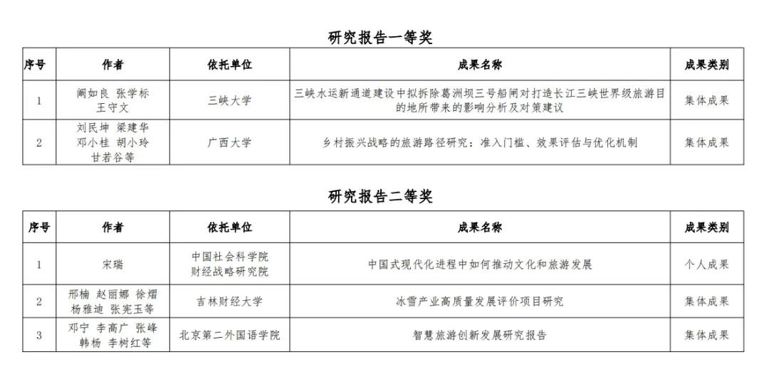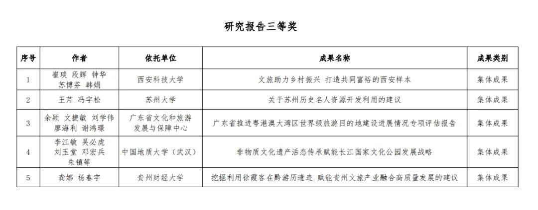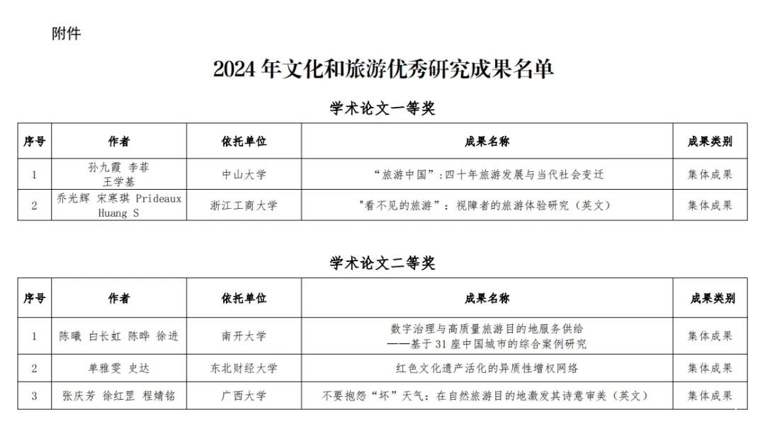 经报文化和旅游部,2024年度共30项成果被遴选为文化和旅游优秀研究成果。其中,学术论文10项、专著10项、研究报告10项。