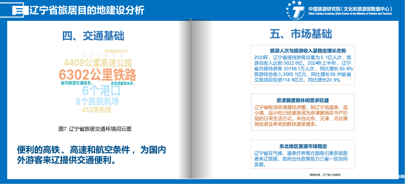 市场客源稳定,旅游综合收入增速。2023年,辽宁省接待游客总量为5.1亿人次,旅游总收入达到5022.6亿。2024年上半年,辽宁省共接待游客33156.1万人次,同比增长50.8%;旅游综合收入3565.1亿元,同比增长58.9%。目标群体的京津冀度假休闲需求旺盛、东北地区客源市场稳定,传统客源吸引要素全面向好发展。