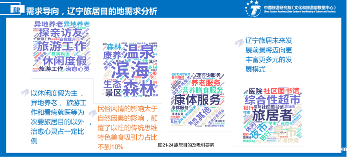 政策方向对旅居目的地做出明确定位。近几年,多方政策均对旅居、康养、房屋住宅、度假、医疗、文旅深度融合等方面提供了有力支撑。辽宁丰富的山海、河流、温泉、森林、湿地等生态资源及富有人情味的辽味文化为旅居者提供赶赴“第二故乡”生活的生态、环境要素。
