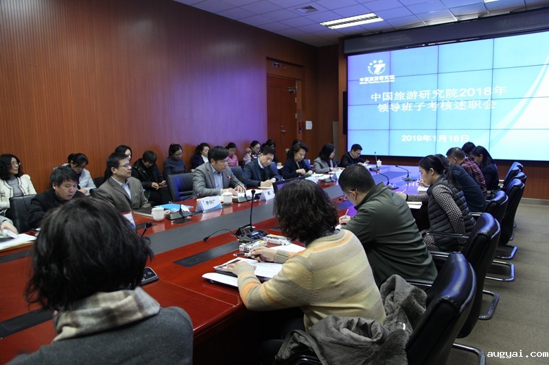 上午,戴斌同志在2018年领导班子考核述职会上代表院领导班子从加强党的建设和巡视整改工作、文化和旅游融合发展研究、文献建设年成果等方面对2018年工作进行了全面总结,并对2019年工作思路进行了重点部署,将“文化建设”作为全院年度工作主题,加强新时期文化和旅游融合研究、文化和旅游统计数据体系建设等。