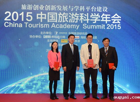 最后,戴斌院长为2015年中国旅游科学年会论文获奖嘉宾颁发了优秀论文奖,并以“相信”为主题做总结发言。他表示,改革开放以后,社会价值取向日趋多元化,为创业创新提供了肥沃的土壤。学界同仁需要与创业者同行,加强与产业实践互动,为旅游产业实践提供指导,引领产业发展。他相信,有着5000年文明历史的中国,一定能够诞生出对世界旅游业有影响、对人类的商业文明有贡献的大企业家。在政治、经济环境不断开放的大背景下,产学两界人士,只要有理想、有责任、有坚守,一定能把大众旅游初级阶段,推向更高级的阶段。